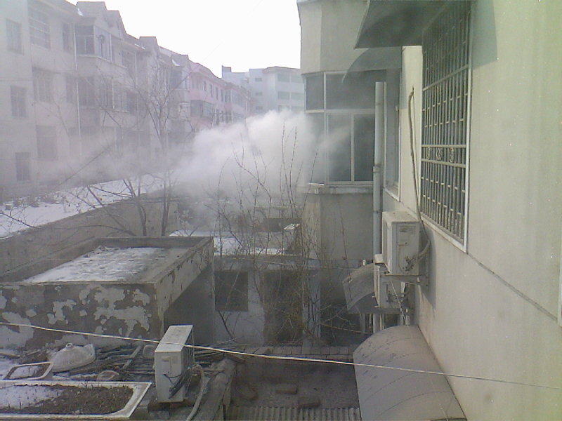 中午我还没起床呢,我奶奶就把我的被子给掀了,说什么着火了.我赶忙起床发现果然,邻居那家里一直冒烟.他们家里居然没人.下面我用图片说明