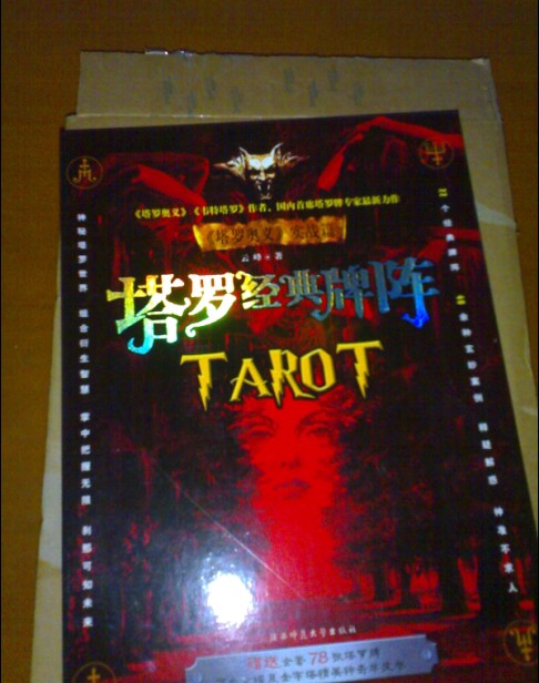前几天受某人影响,我也买了副塔罗牌…淘宝上买的,谁知道那家伙从卓越网上倒卖给我..不过也无所谓啦.这本书定价40元,淘宝上那哥们是VIP会员..打4折..16元……贬值这么快…